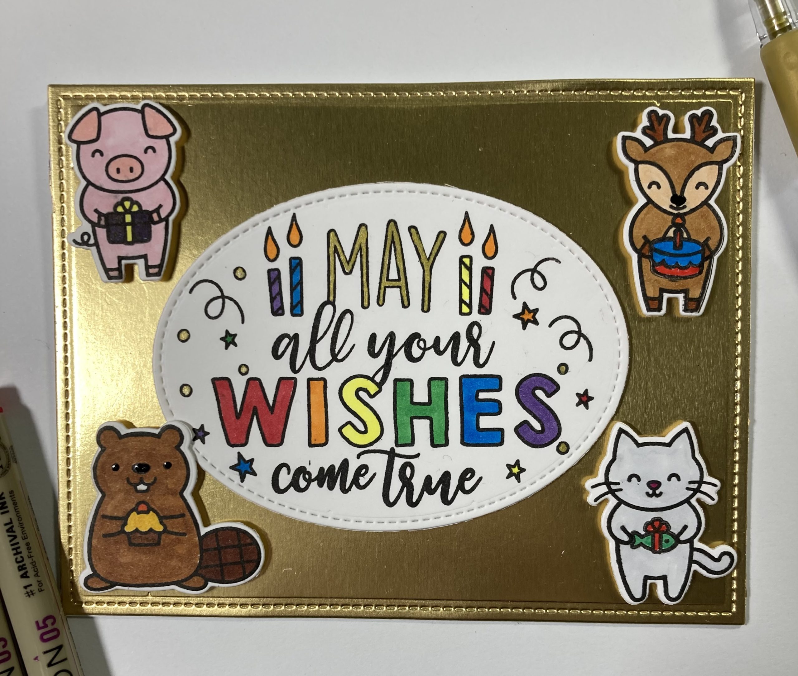 I envisioned this as a bridal shower set, using Lawn Fawn’s Platform Pop-Up and Henry’s ABCs and 123s. A circle from the Large Stitched Circle Stackables and the heart from 4 Square Backdrop-Landscape provide a resting place for for the table number, and a square from Large Stitched Square Stackables folded in half makes a great place card. Lavender and Vanilla Malt cardstocks were chosen for their dainty feel, and the trim is from my stash.